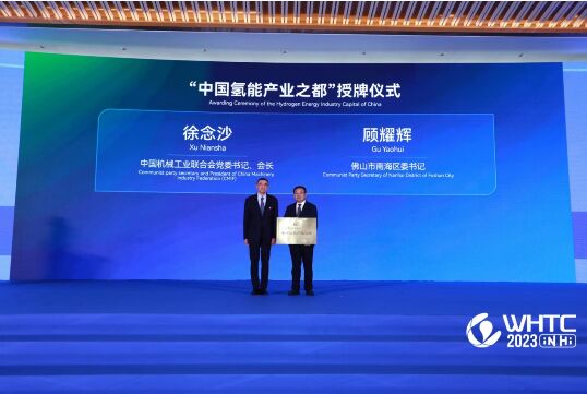在本屆開幕式上舉行了“中國氫能產業之都”授牌儀式,中國機械工業聯合會黨委常委張克林宣讀《關于授予佛山市南海區“中國氫能產業之都”稱號的決定》。徐念沙向佛山南海區區委書記頒發“中國氫能產業之都”榮譽稱號。