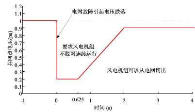 圖1 風電機組低電壓穿越要求